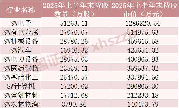 已披露2025年中报上市公司中QFII十大重仓行业