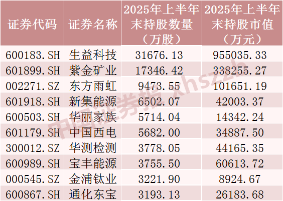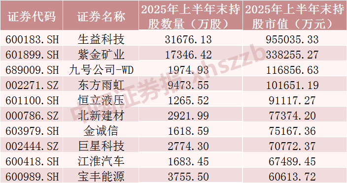 已披露2025年中报上市公司中QFII持股数前十股