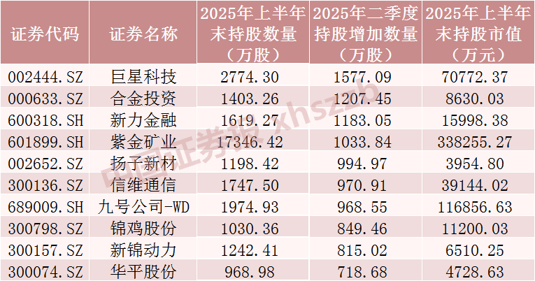 已披露2025年中报上市公司中QFII持股数增加前十股